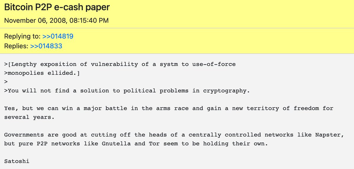 47/ This last feature was not top of mind for the cypherpunks before the late 1990s.
