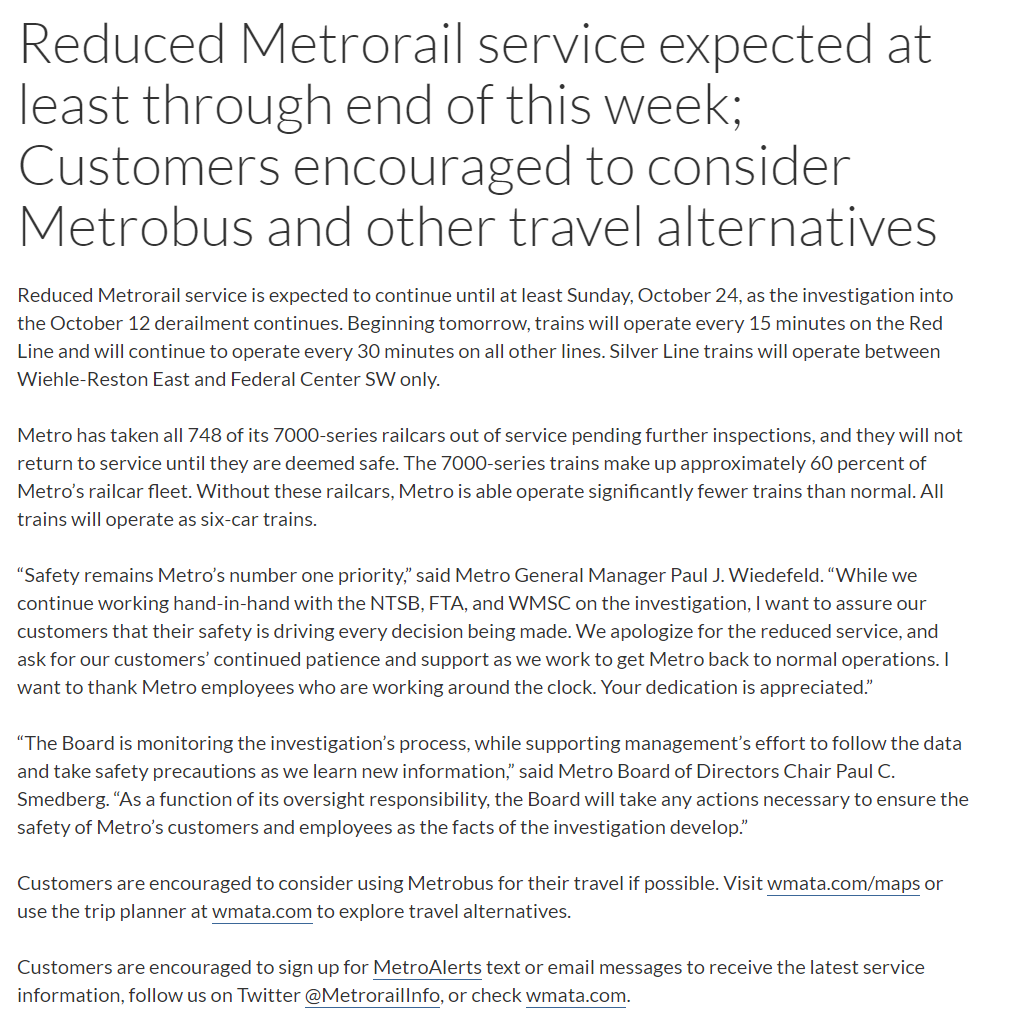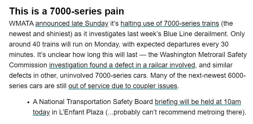 ICYMI: the NTSB gave us details why the 7000-series trains are out of service leading to passengers waiting 30+ minutes for trains