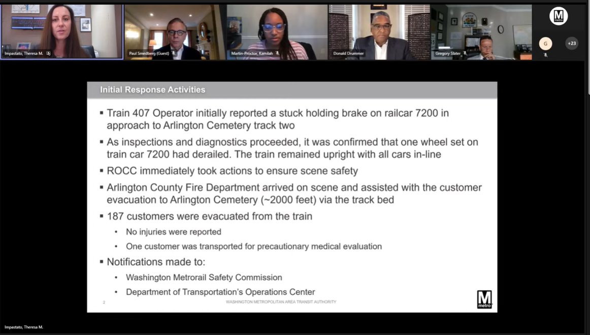 The #wmata Board is changing today's Safety committee agenda to add discussion of Tuesday's derailment. Impastato leads the overview.