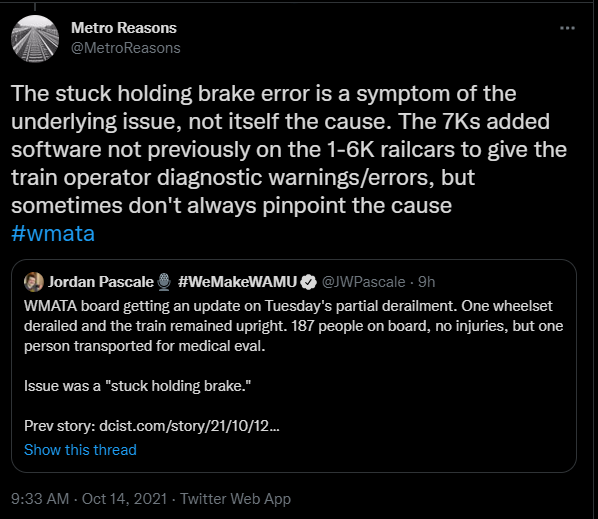 I already wrote about why the "stuck holding brake" error is a symptom, not a cause, that could (or could not!) be related to Tuesday evening's derailment. See screenshot on the right.