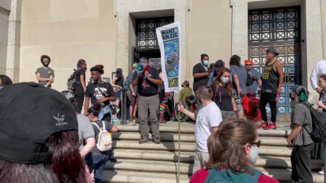 MPD and Fire&EMS were here asking if anyone needed assistance. There’s still about 100 people outside rallying the Dept of Interior and demanding the Biden Administration end fossil fuel projects. They’re here as part of the People vs Fossil Fuels climate week of action