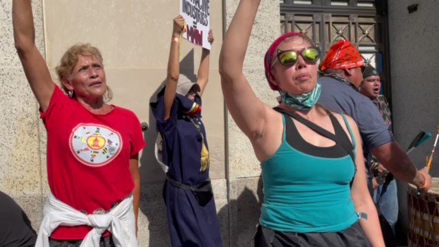 Climate protesters are now rallying outside the Department of the Interior. They’re trying to get inside but police are blocking the entrance. I can see a few Indigenous women through the doorway who are sitting on the floor inside the building and linking arms.