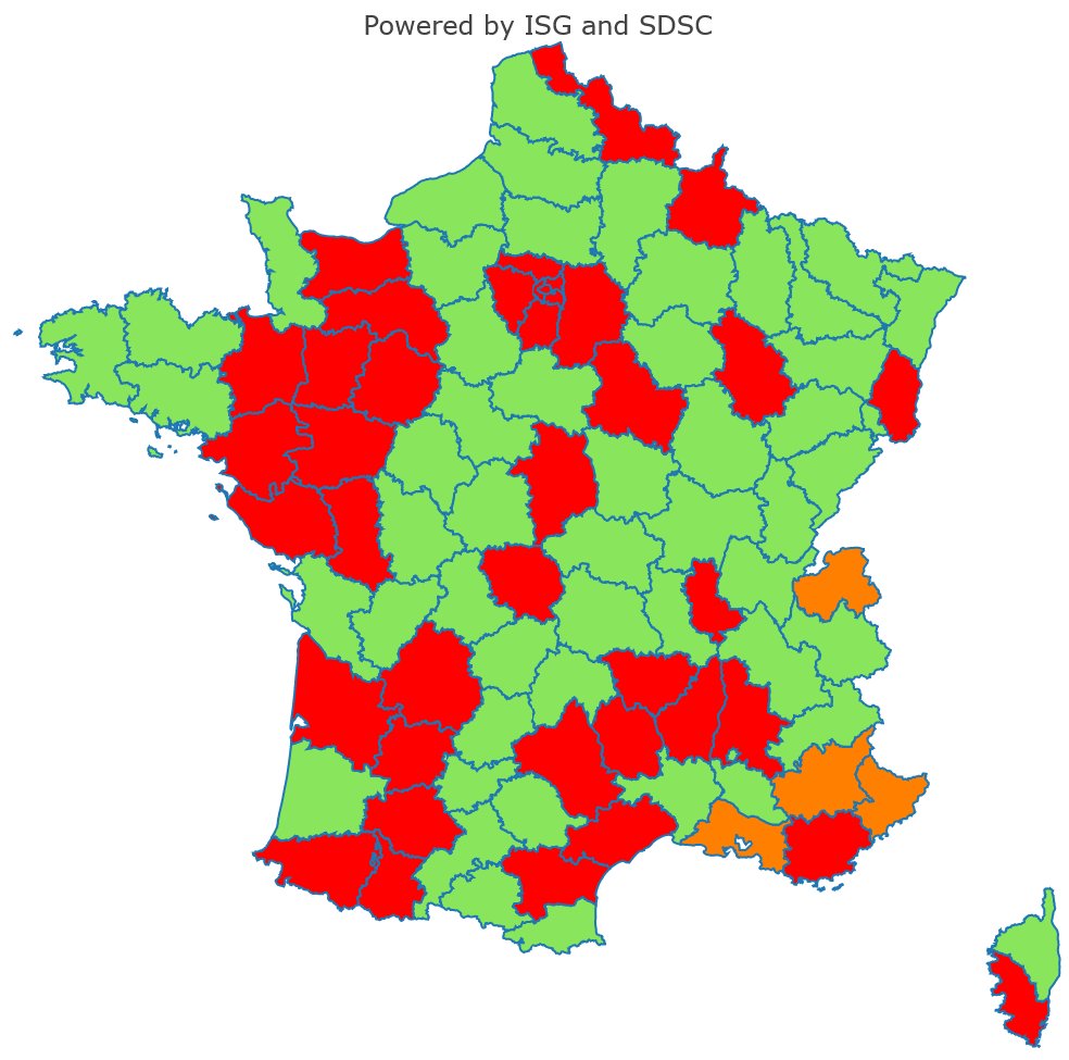 Safety zone: nb of forecast cases < 30/100K population/week