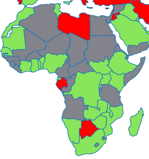 Libya=0.93 is slowly landing (red), high mortality (21.0% received 1 dose).