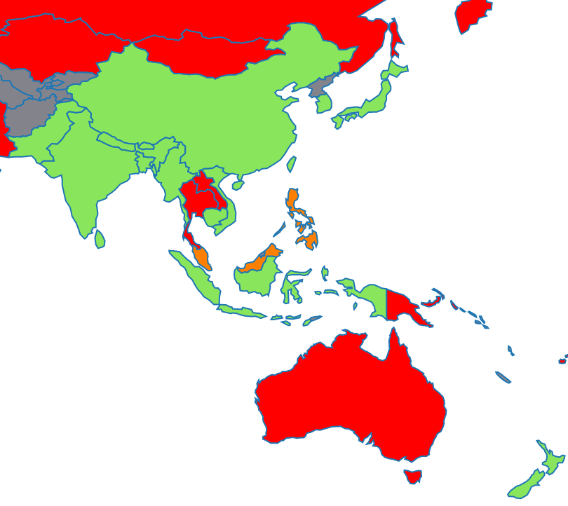 - Orange (R-eff <0.9) landing [close to safe zones]: ALB; Bos&Herz; [CH; NO]
