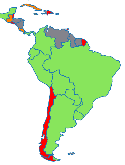 Chile=1.12; Domin Repub.=1.08 are leaving their #COVID19 safety zones. El Salvador=0.97; Belize=0.95: plateau, medium mortality;