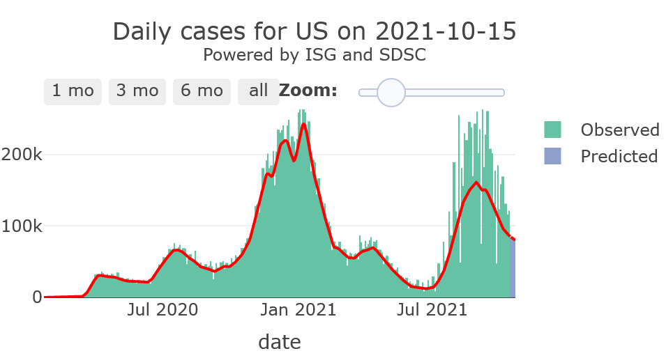 1/5 - By Oct 23, France is foreseen to reach 5,433 new #COVID19 cases, with 20 deaths/days, if the trend remains at same pace (R-eff=1.07); 75.8% 1 dose.