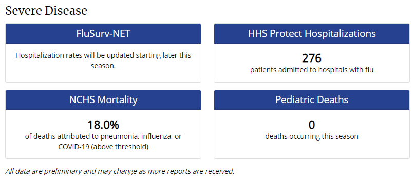 CDC reports a total of 276 present flu hospitalizations nationally.