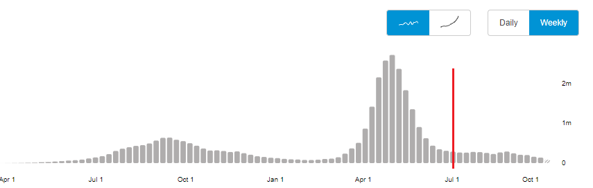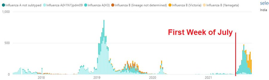 Here are WHO charts for India for Flu and COV2 with the first week of July, 2021 marked.