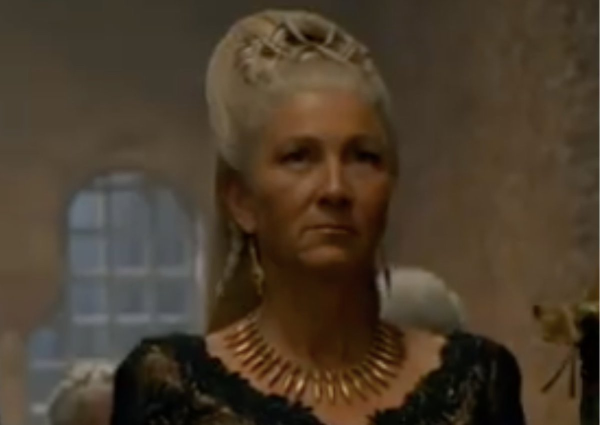 Alicent é a segunda esposa do Rei Viserys I e filha da Mão do Rei, Lorde Otto Hightower. Vinda de uma casa muito nobre, a Rainha é mãe de quatro Targaryen — Aegon, Helaena, Aemond e Daeron. Em oposição à Rhaenyra, Alicent lidera os Verdes.