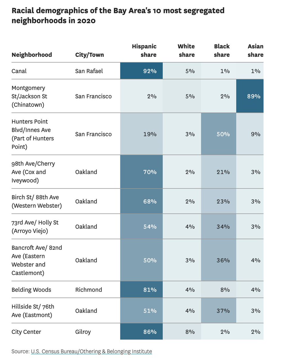 The Canal Area in San Rafael is the most racially segregated in the Bay Area, according to a new analysis.