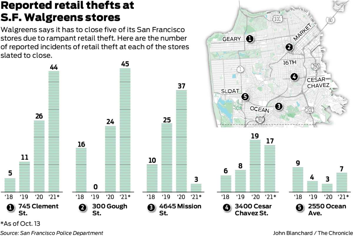 Data released by the San Francisco Police Department raises questions about an announcement from Walgreens earlier in the week that organized, rampant retail theft forced it to close five stores. sfchronicle.com/sf/article/Is-…