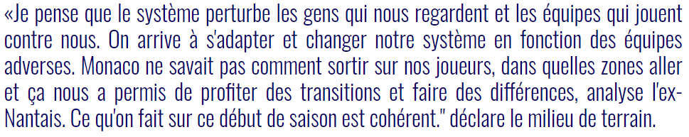 Et insister plus fortement sur cette dynamique est justifiable face à certain adversaire. Comme par exemple lors de la très belle victoire au stade Louis II face à l'@AS_Monaco il y a quelques semaines.