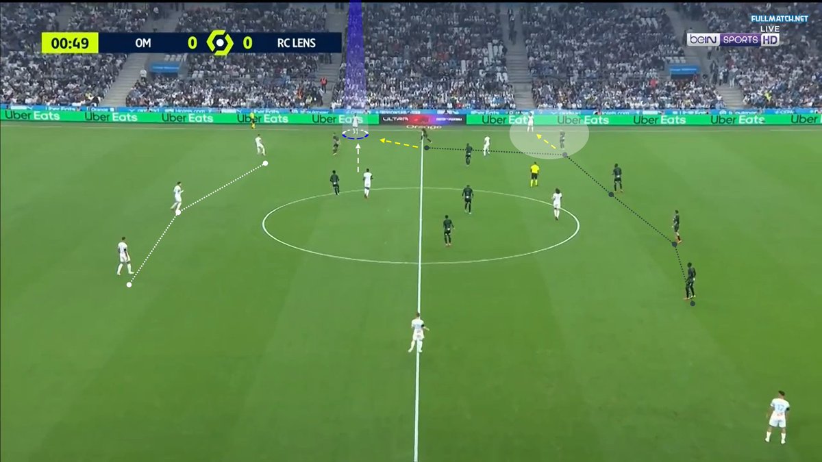 Mais lors de ces derniers matches, des difficultés sont apparues. En effet, si on reste dans la même thématique, lors de la défaite face au @RCLens, les sang et or par leur organisation défensive ont parfaitement contrôler ce comportement pour entraver la progression marseillaise
