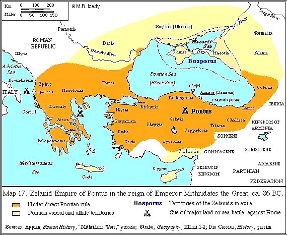 The Zelan Kurdish clan of Commagene (Adyaman area), for example, spread to establish in addition to the Zelanid dynasty of Commagene, the Zelanid kingdom of Cappadocia and the Zelanid empire of Pontus-all in Anatolia.