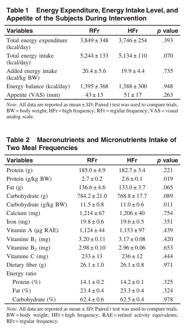 🧐Estudio realizado en atletas que un grupo realiza 3 comidas y el otro 6 sin diferencias en el número de calorías consumidas ni distribución de macronutrientes entre grupos