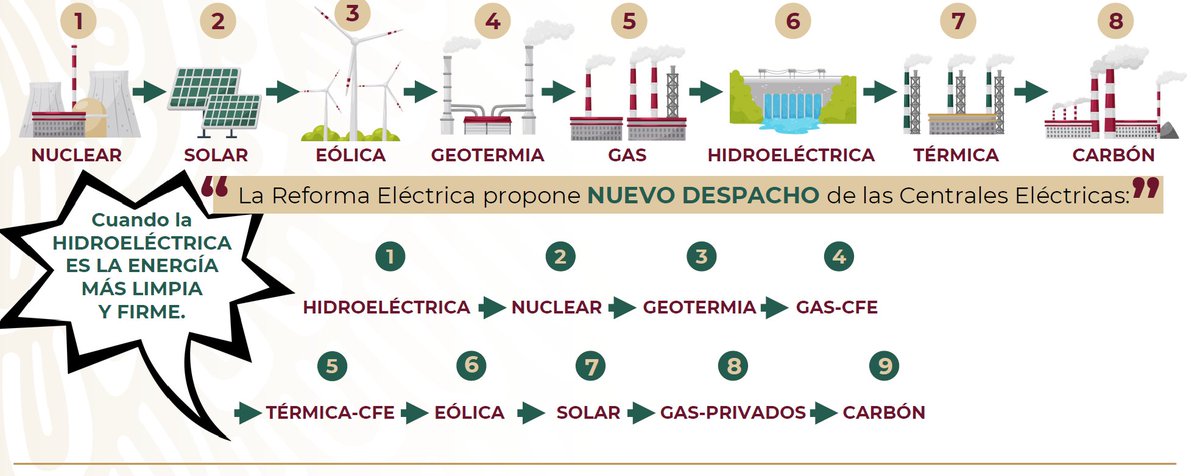 Despacho de la electricidad deberá esta ligada a la capacidad generación en el momento de la demanda real y esperada. Ademas de considerar las que menor emisiones generen y tengan un bajo costo derivado de la energía primaria utilizada para su transformación en electricidad.