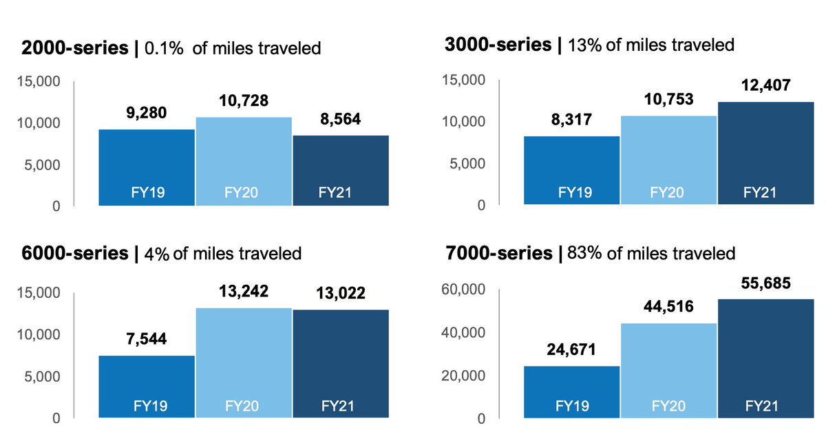 Here's a look at how much of a workhorse the 7000-series trains have been this year, making up 83% of all miles traveled on the system.