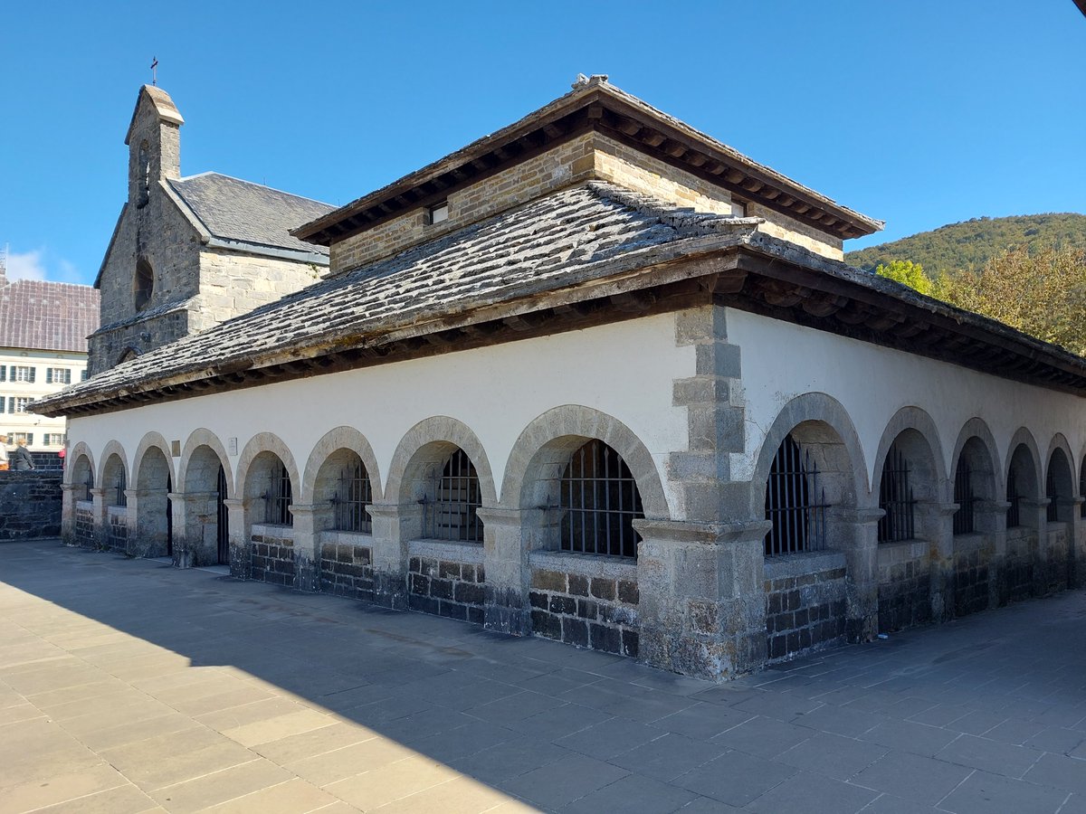 Esta profunda cripta de enterramientos se encuentra bajo la capilla del Espíritu Santo y está rodeada por un claustrillo donde se entierra a los vecinos de Roncesvalles. Vamos a entrar