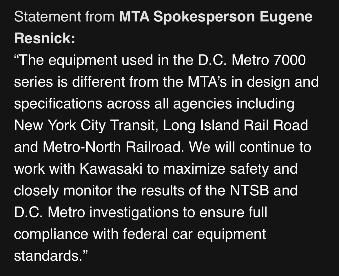 NTSB says it stands behind WMSC removing trains. Appreciate they take safety seriously and made the move while they still didn’t know extent of the issue.