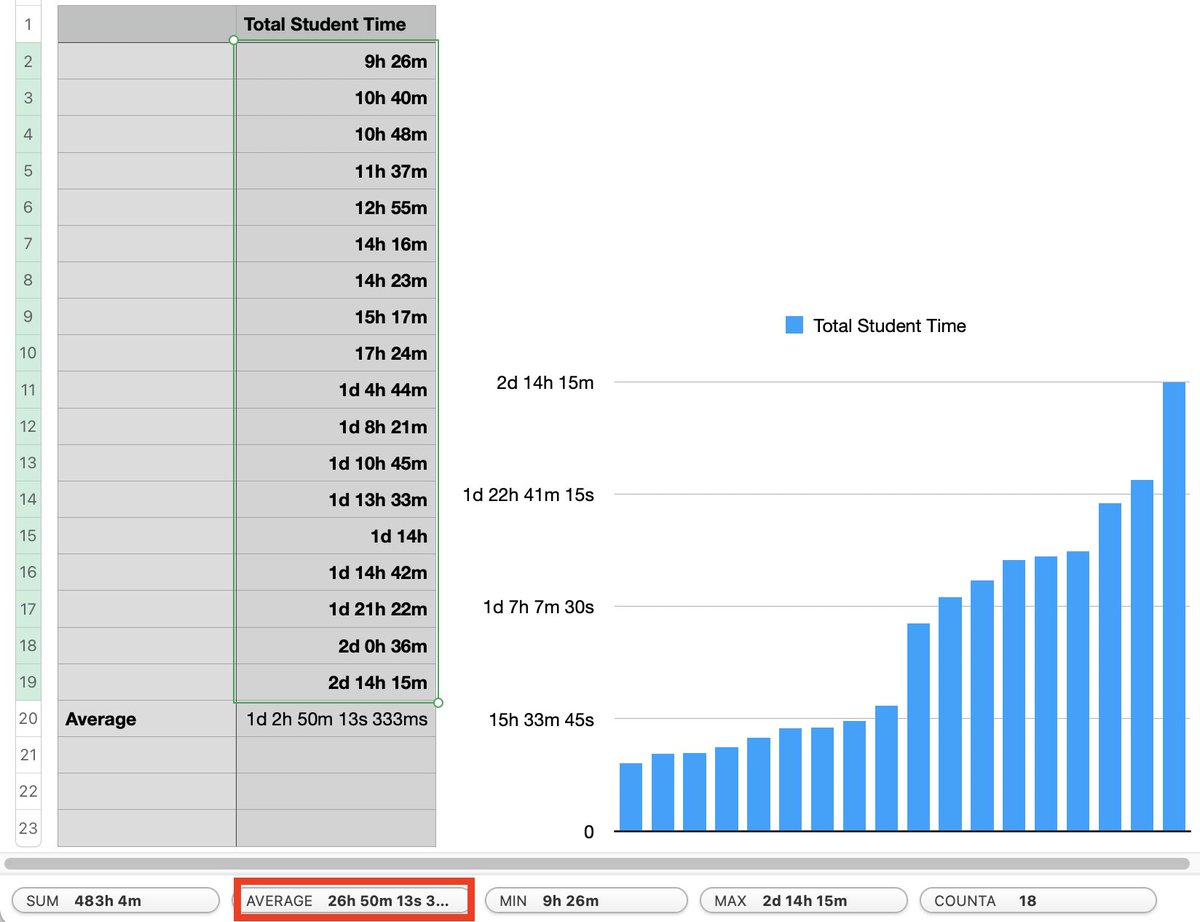 1) This was originally created targeting about 2 days (~14 hours after subtracting lunch ;)) of in-person delivery. You can see a *few* students could do it in that time, but most needed more time. This is why I really like that I can now let students learn at their own pace
