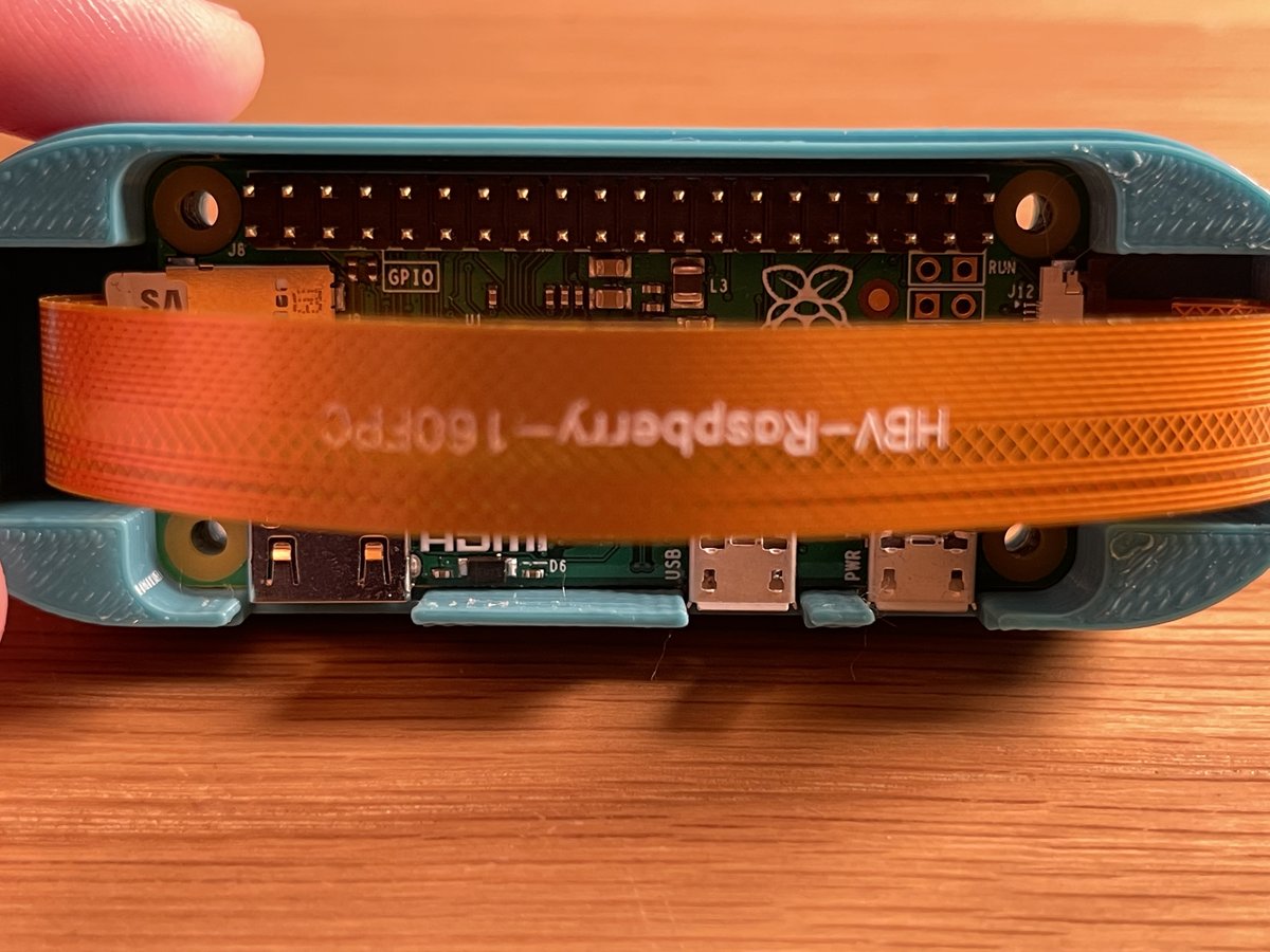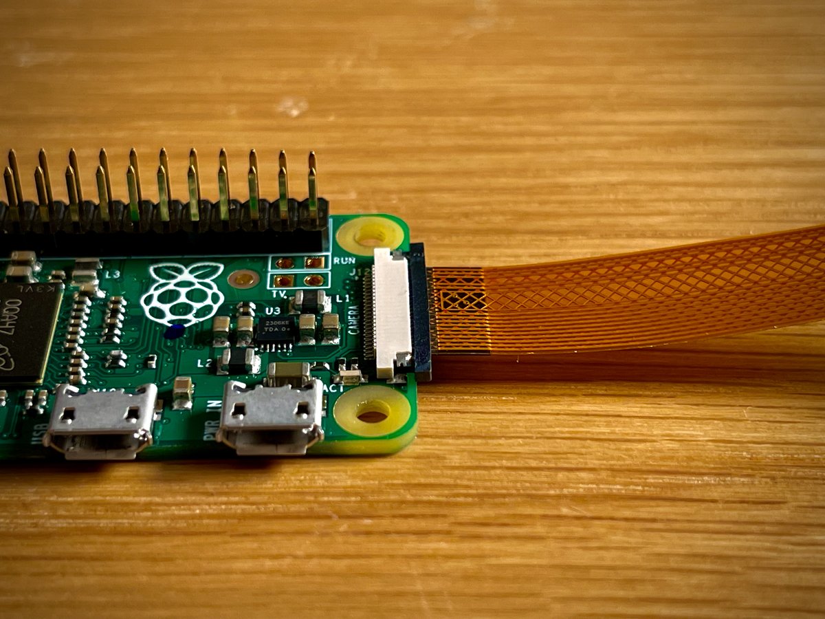 Take the narrower part of the ribbon cable and attach it to the Raspberry Pi zero.