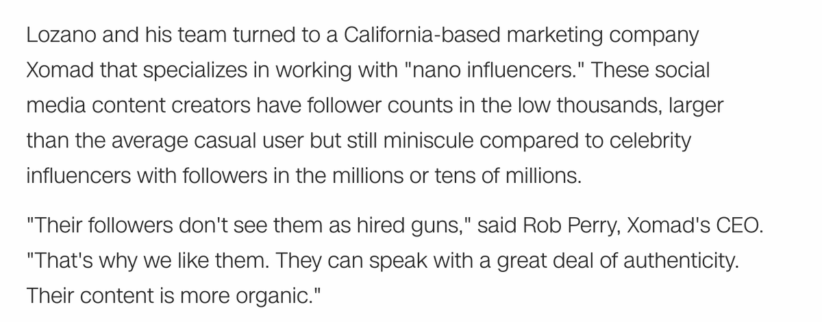 Public Good Projects is a non-profit bribing "micro-influencers" to "post about why they’re planning to get the COVID vax. "Payments per post can be anywhere between tens to hundreds of dollars," acc. to nonprofit’s CEO, Joe Smyser. /3 politico.com/news/2021/01/3…