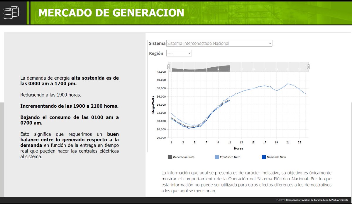 En la imagen del CENACE, esta la demanda como se comporta en forma diaria, y a donde el pico de mayor demanda esta entre las 1900 pm a 0200 am.