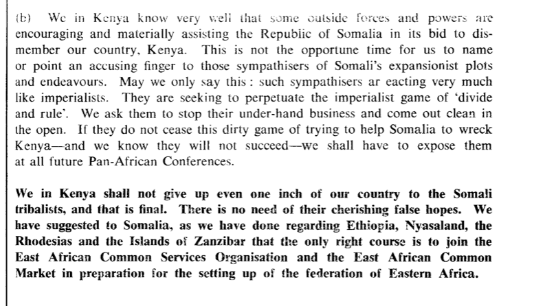 2/ Secessionists saw the Northern Frontier District as a part of Somalia & predicted a unitary Kenya would bring 'oppression, servitude, civil war and other evils'.