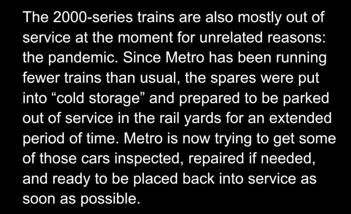 The 2Ks were mothballed due the pandemic's lower number of railcars needed for service. Undoing that decision isn't liked flipping a switch, but Metro is working to make more available. From a draft of an upcoming post: #wmata