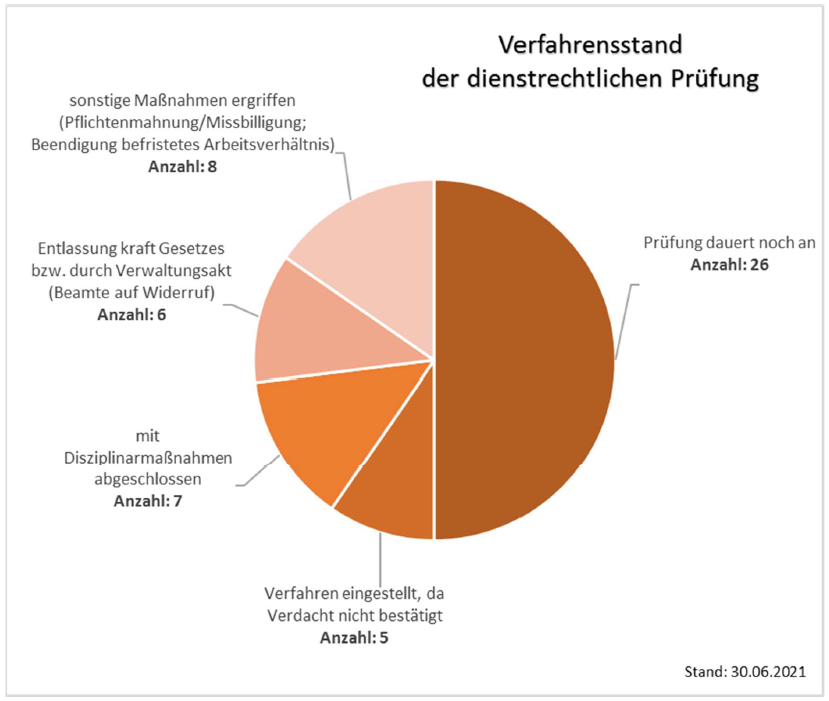 @SMIsachsen Bei den 47 Sachverhalten mit extremistischem Bezug seien 52 Verfahren zur Prüfung dienst- oder arbeitsrechtlicher Maßnahmen eingeleitet worden. Davon ist die Hälfte noch nicht abgeschlossen. Die Ergebnisse (bisher) in der Übersicht: @SMIsachsen#sachsen#polizei