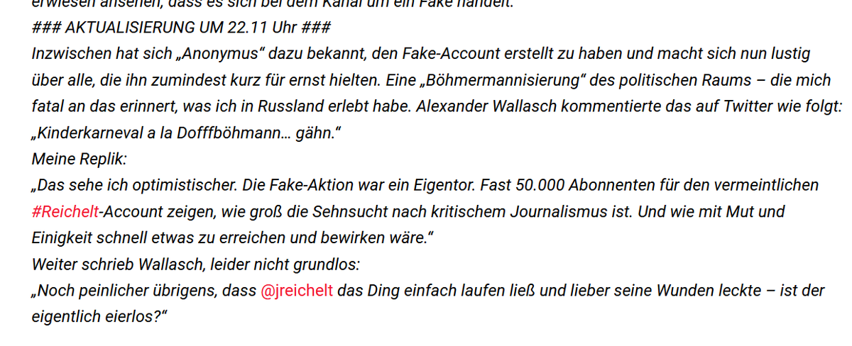 "Viele, die diesem Kanal folgen und ihn beworben haben, behaupten von sich, alles kritisch zu hinterfragen. Ihr habt aber rein gar nichts hinterfragt."
