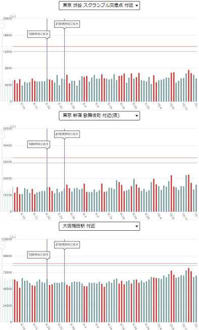 下記のサイトで、各地の人出の増減が参照できます。