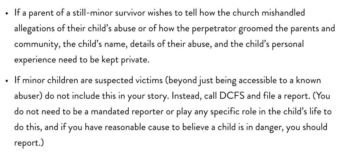 We have compiled guidelines for stories of sexual abuse (and soon for spiritual abuse as well) to help survivors navigate this process.