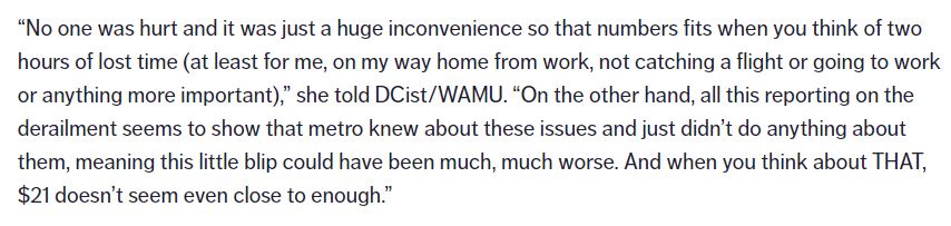 How much is your time and trauma worth after being stuck on a derailed train for nearly an hour and a half and walking through a tunnel to get to safety?