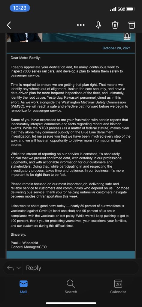 New internal memo out to employees from WMATA GM Paul Wiedefeld.