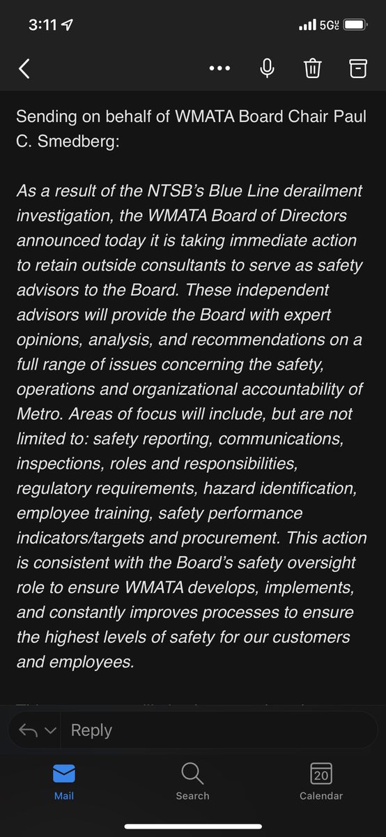 Was confused on the quote in that first tweet, but sounds like that is addressing how these investigations work where only the NTSB is allowed to speak about the investigation. Basically kinda bars WMATA from talking at the moment.