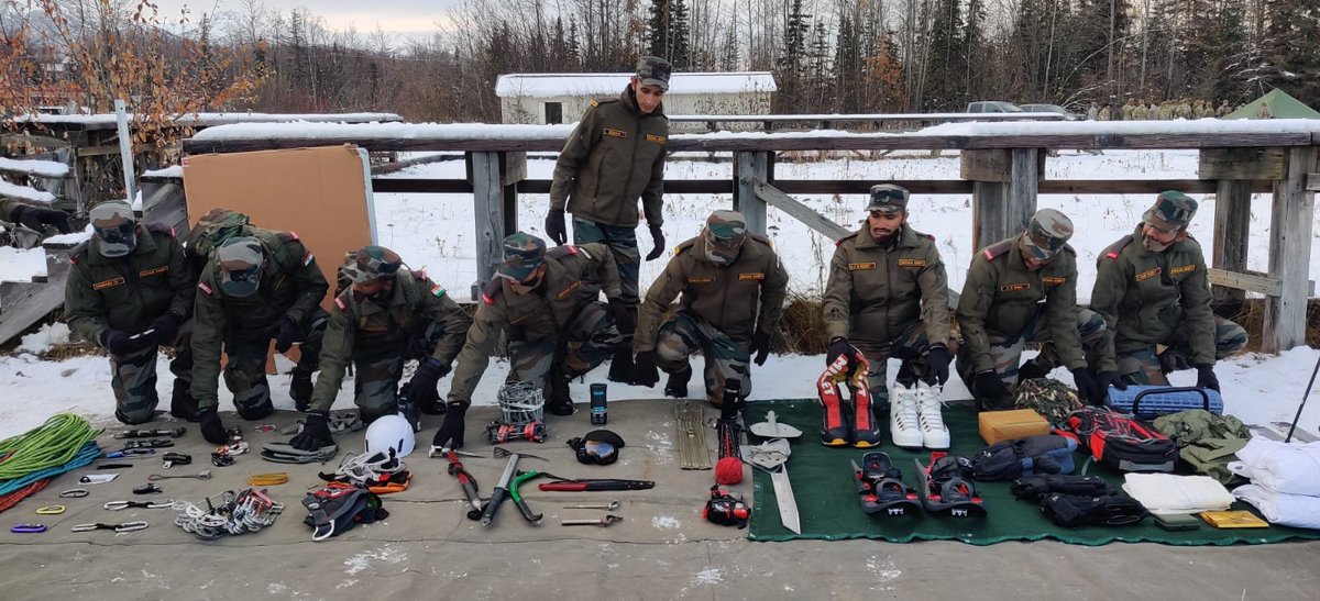 Later a team of instructors from the High Altitude Warfare School (HAWS) took a lecture cum demonstration of the various types of rock craft and snow craft equipment held with the trained mountaineers of the Indian Army.