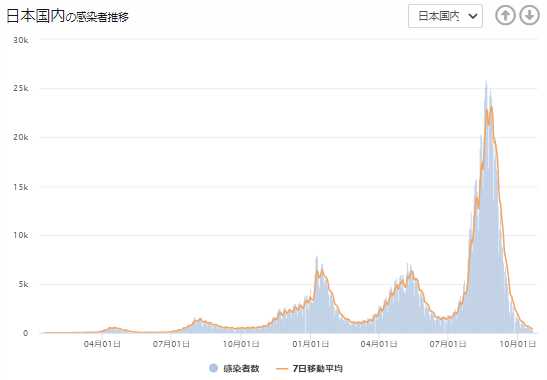 ピーク時に7日移動平均で1日25万人の新規感染者を出した後の検討にも関わらず、このレベルなのかと驚きます。