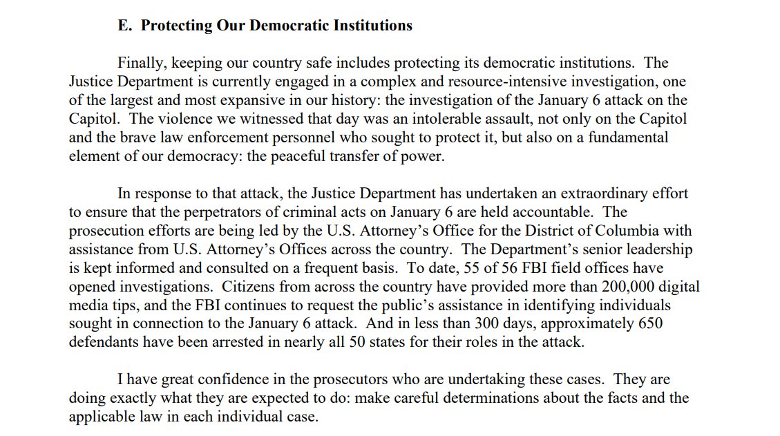 Here's AG Garland's prepared testimony about the #CapitolRiot. Expect questions on the subject from the committee to come.