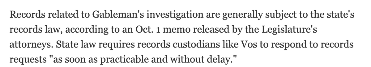 The Wisconsin Assembly isn’t a law enforcement agency, and even the assembly’s own lawyers have confirmed that records of Gableman’s investigation are public records and must be released. jsonline.com/story/news/pol…