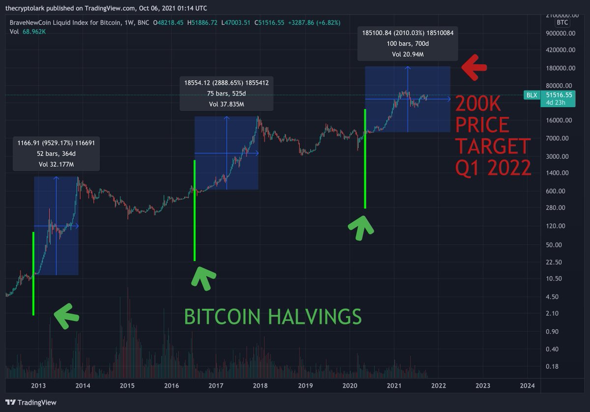 If we consider the lengthening cycle and diminishing return theory then we could see Bitcoin going up to 200K for a blow off top for this cycle sometime in late 2021, but more likely early 2022.