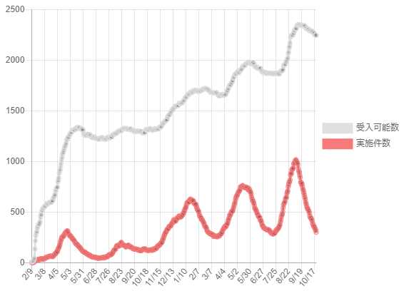 ピーク時に7日移動平均で1日25万人の新規感染者を出した後の検討にも関わらず、このレベルなのかと驚きます。