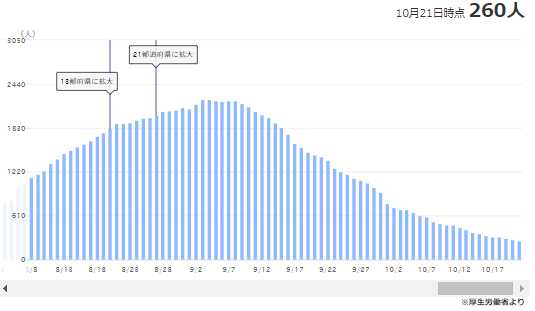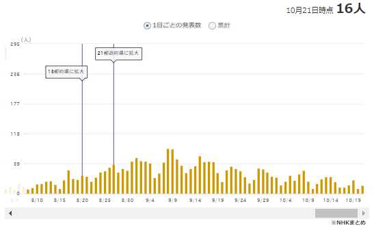 都の基準で集計した22日時点の重症の患者は、21日より3人減って21人
