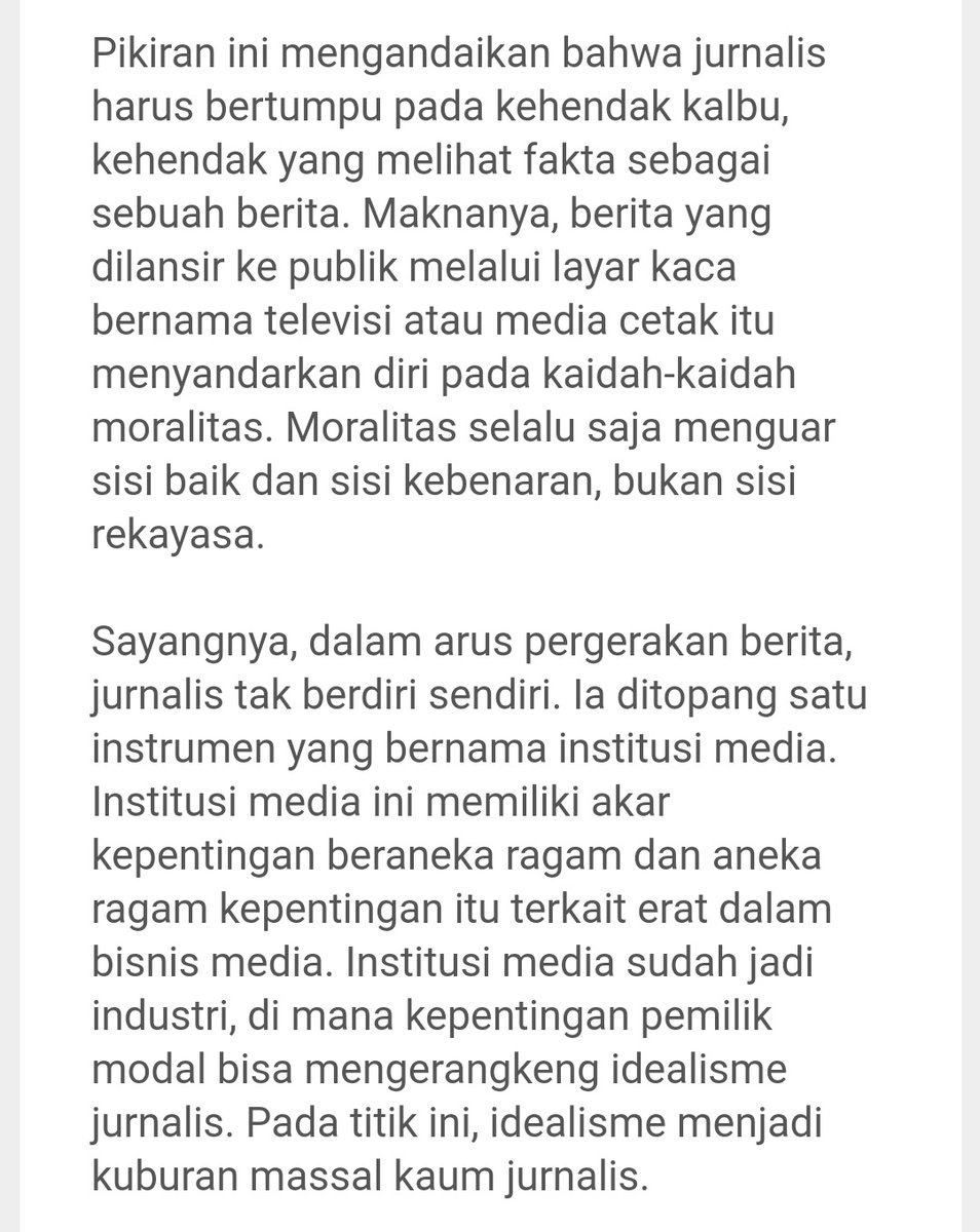 Bagi adik-adik mahasiswa (saya tembus koran Kompas pas semester 4) dan kawan-kawan yang ingin tulisannya tembus koran nasional seperti @hariankompas, jangan terjebak stigma lama, bahwa menulis di media massa harus sesuai dengan ideologi media tersebut. Gak 100 % benar.