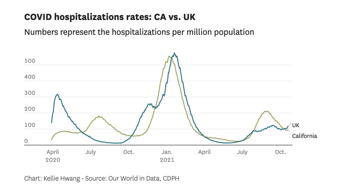 The U.K. had seemed like it was recovering from a delta wave in July, with its case rates converging with California’s once more. But since the beginning of September, cases have diverged dramatically, spiking in the U.K. and diving here. sfchronicle.com/health/article…
