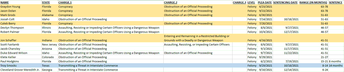 Troy Smocks was actually the felony defendant facing the second-lowest recommended sentence so far. The defendants in orange below are the Oath Keepers who have pleaded guilty so far to #CapitolRiot charges. Smocks has just been sentenced first.
