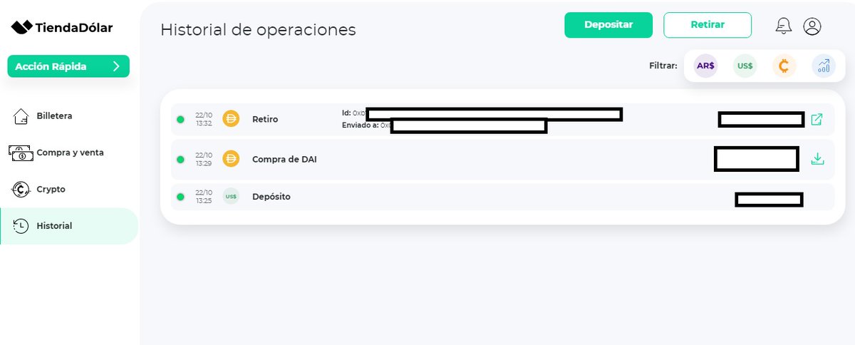 5⃣ - Estando en Tienda dolar cambio los dolares que tenia en el banco por $USD y de ahi mismo podes intercambiarlo por $DAI