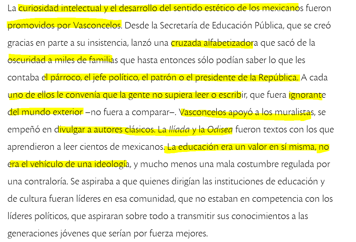 3- En cambio, para criticar a la política educativa de la 4T, Soledad Loaeza se saca de la manga un supuesto afán del gobierno de AMLO para destruir el legado de José Vasconcelos. Parte del error de asumir que lo bueno de la educación en México es legado nomás de Vasconcelos.