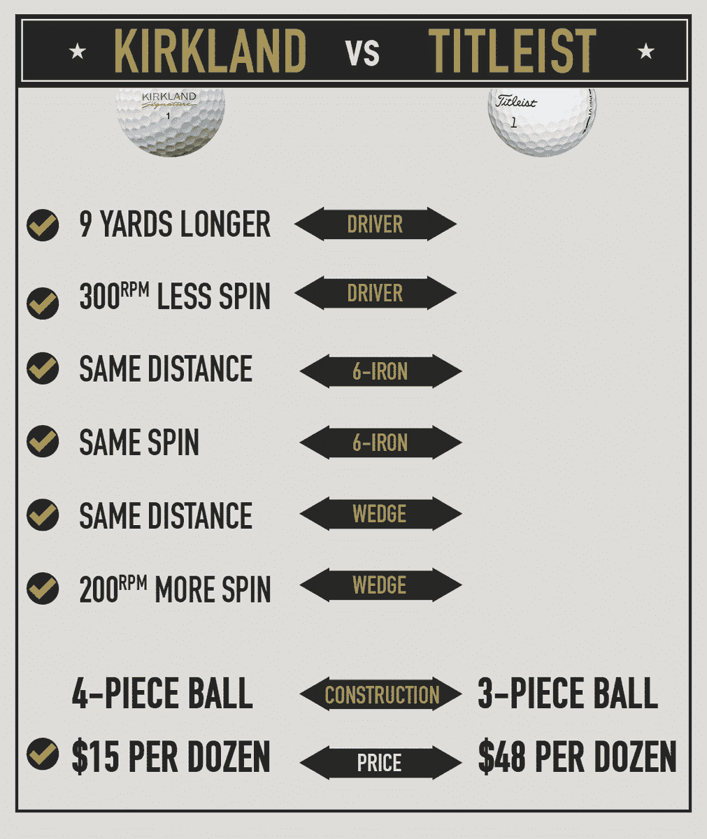 The Pro V1 is $48 per dozen, the Kirkland is $15.